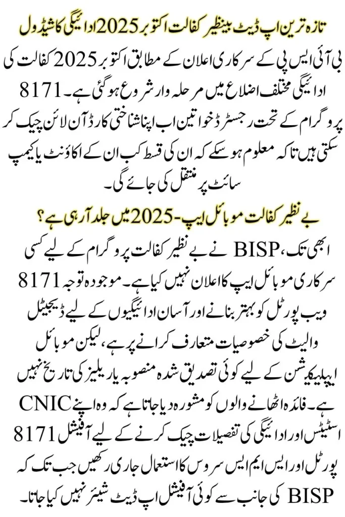 Latest Update – Benazir Kafalat October 2025 Payment Schedule